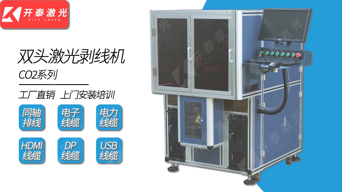 双头CO2激光剥线机采用高性能进口CO2激光器,全封闭双管双光路设计,精度高,速度快,主要针对于各种排线,信号线的绝缘层剥除作业。