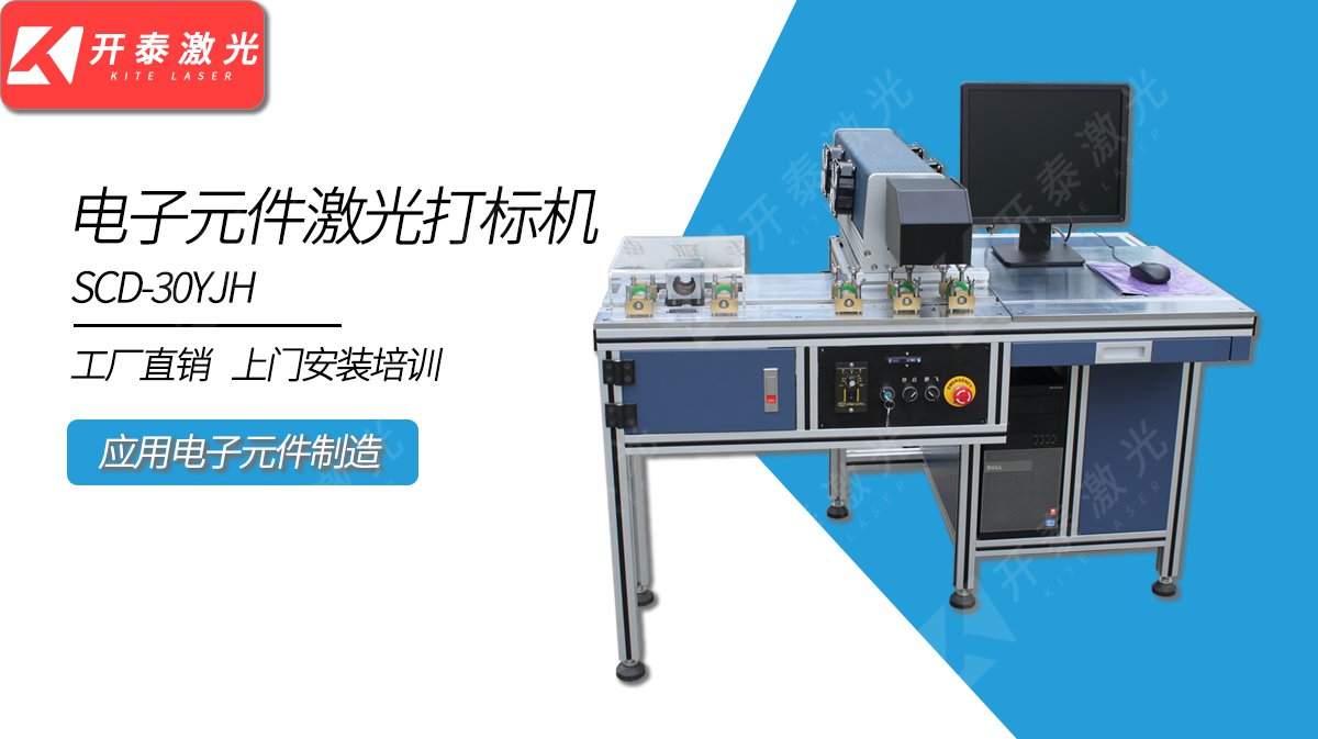 SCD-YJH半自动电子元件激光打标机。采用高性能进口CO2射频激光器,高速振镜光学系统,是针对电子元件制造行业产品在线激光打标生产的系列设备。