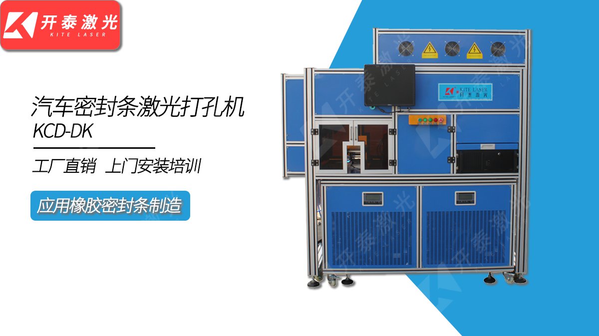 KCD-DK全自动汽车门封条激光打孔机,采用高性能CO2进口射频激光器,全封闭工位,可配合密封条硫化速度进行自动匹配打孔作业。